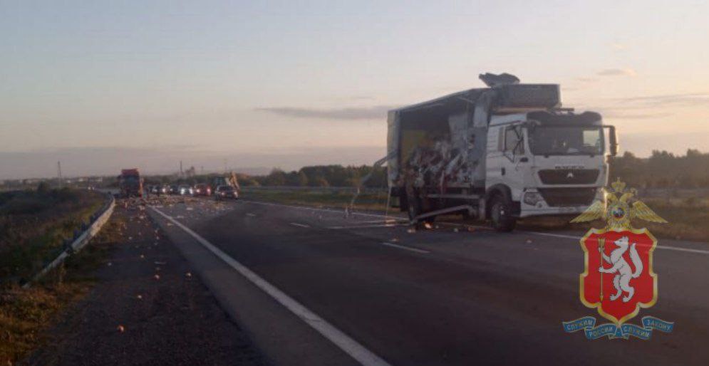Воскресенье, 14 сентября, 12.22 В Артемовском районе на трассе столкнулись легковушка и два грузовика