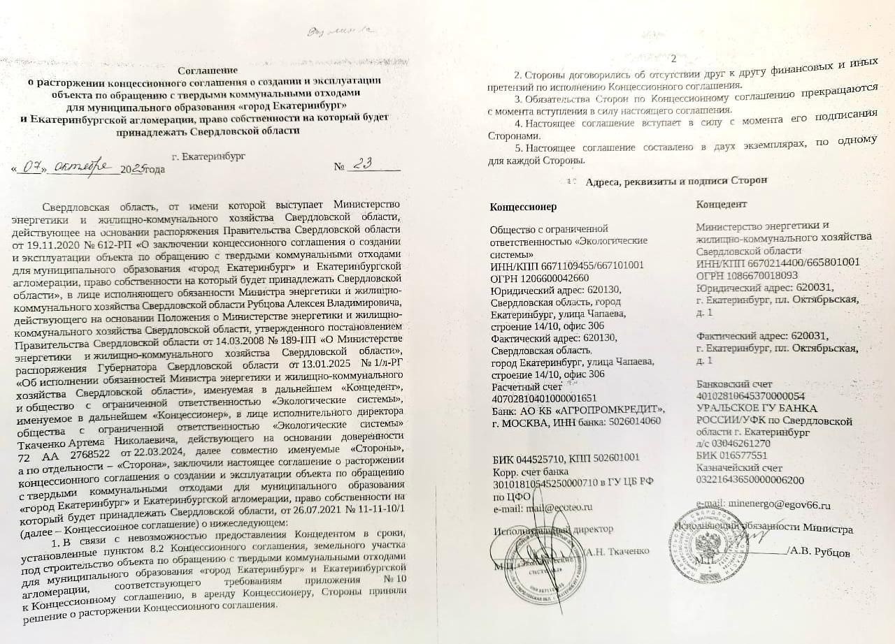 Вторник, 14 октября, 15.47 Соглашение о строительстве мусорного полигона в Сысертском районе расторгли