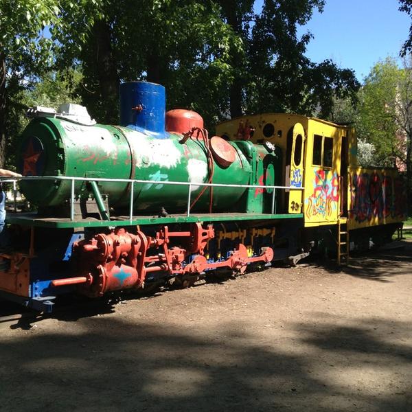 Главной достопримечательностью парка Энгельса являлся узкоколейный паровоз, выкрашенный в яркие цвета, как элемент детской площадки. Это исторический экземпляр серии «157С», построенный на Сормовском заводе в 1936 году и длительное время работающий на узкоколейной железной дороге. Паровоз имел собственный заводской номер «3363». По некоторым данным этот яркий образец советской инженерной мысли работал на Калатинской узкоколейной железной дороге. Во всем мире осталось только 4 таких паровоза, и все они установлены в виде памятников.