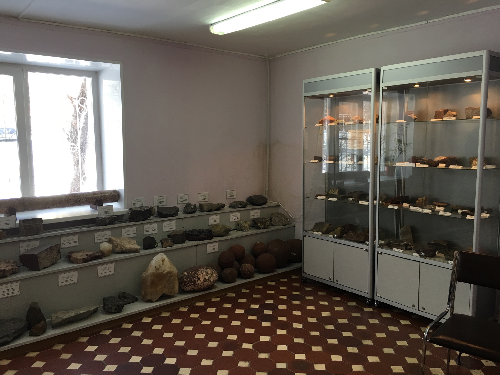 Экспозиция представляет из себя несколько залов. Первый лаконично рассказывают о геологии территории, кстати, у музея имеется обособленный отдел по геологии региона, который называется "Штуфной кабинетъ", в нем собрано и представлено более 1000 уникальных образцов геологических пород со всего мира, но основною выставочную площадку минералогия не обошла.