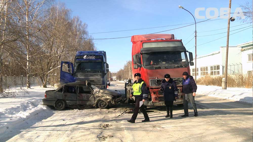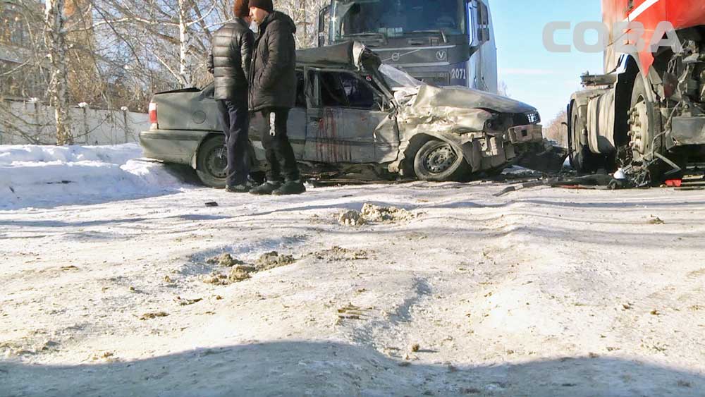 На улице Монтажников произошло смертельное ДТП: Daewoo Nexia столкнулась с грузовой машиной Volvo. Легковушку отбросило на другой припаркованный большегруз Volvo. Водитель Daewoo Nexia скончался на месте, передает «СОВА».