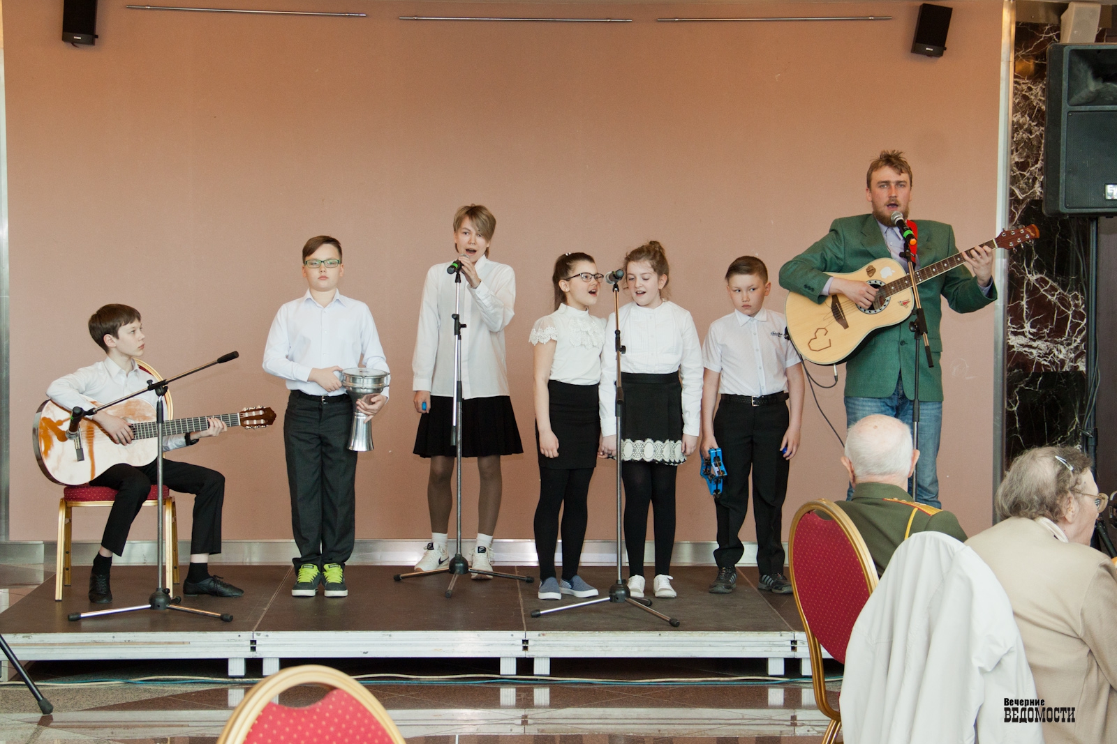В праздничном концерте для ветеранов выступили артисты разных возрастов, среди них — артисты театра детской песни «Fантазеры» при молодежном театре-студии «Галерка», воспитанники клуба по месту жительства «Искра» Кировского района города Екатеринбурга (они же вручили ветеранам Великой Отечественной войны подарки, сделанные своими руками), музыканты Артем Анисимов, Олег Шабатовский и фронтмен группы In Bloom Вячеслав Мухамадеев.