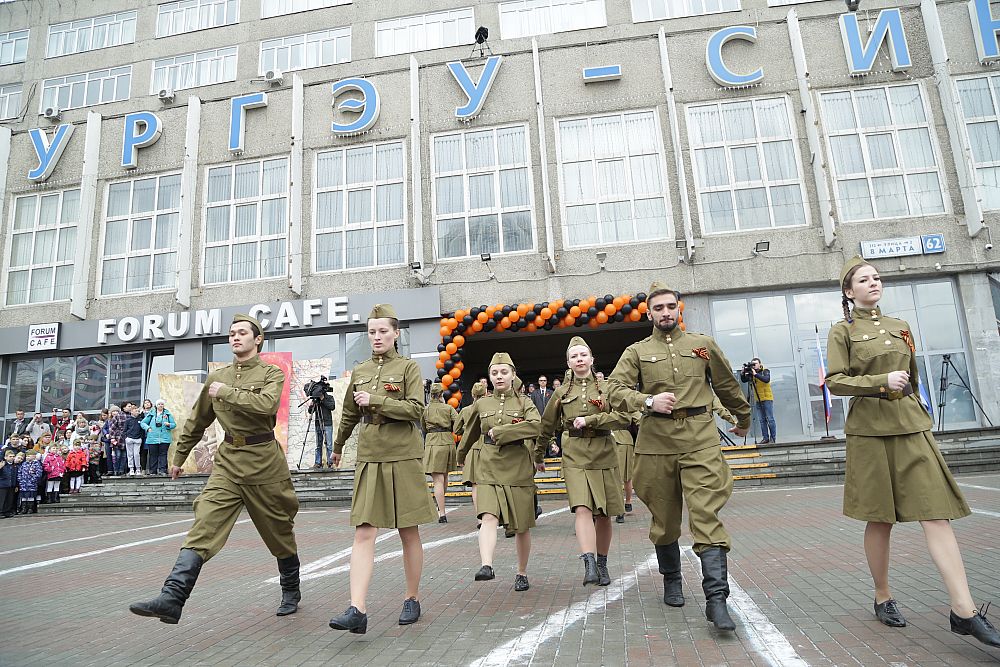 Сегодня на площадке перед Уральским государственным экономическим университетом прошла акция «Вальс Победы», участие в которой приняли несколько сотен человек: дети, студенты, преподаватели, люди старшего поколения.