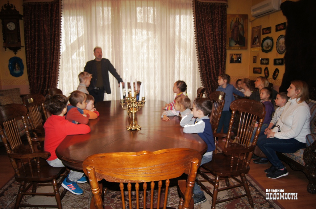 Сегодня, 1 июня, в День защиты детей, в Екатеринбурге воспитанники детсада № 582 окунулись в XVIII век. Председатель Свердловского областного отделения Русского географического общества, председатель правления Уральского интерфонда ветеранов-инвалидов войны в Афганистане Михаил Горюнов провел для них экскурсию в кафе-музее «Демидов», который знаменит своей коллекцией каслинского литья и уникальным интерьером в стиле времен царской России.