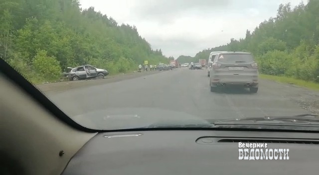 Сегодня, 11 июля, около 11 часов на 175-м километре Серовского тракта между Кушвой и Нижним Тагилом произошло массовое ДТП с участием трех автомобилей. Транспортные средства после столкновения буквально раскидало по проезжей части, образовалась пробка.