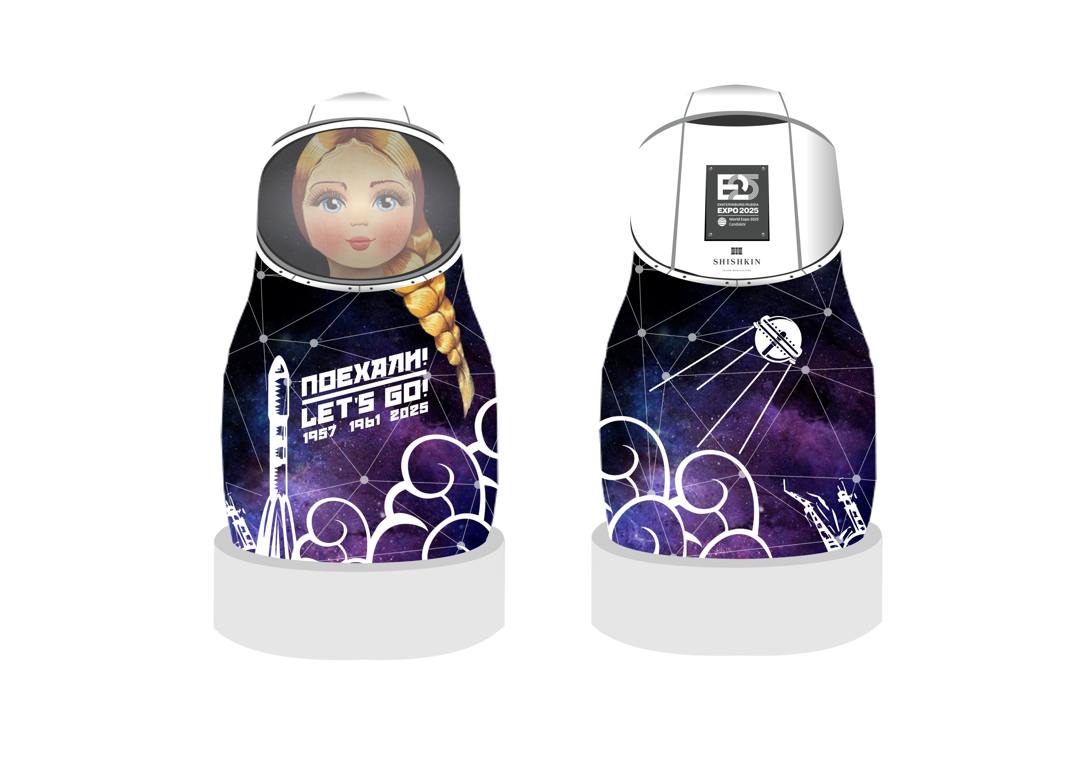 Матрешки выполнены в человеческий рост из металлопластика и дополнены элементами виртуальной реальности: при наведении смартфона на арт-объект можно ознакомиться с достижениями человечества, представленными на ЭКСПО.