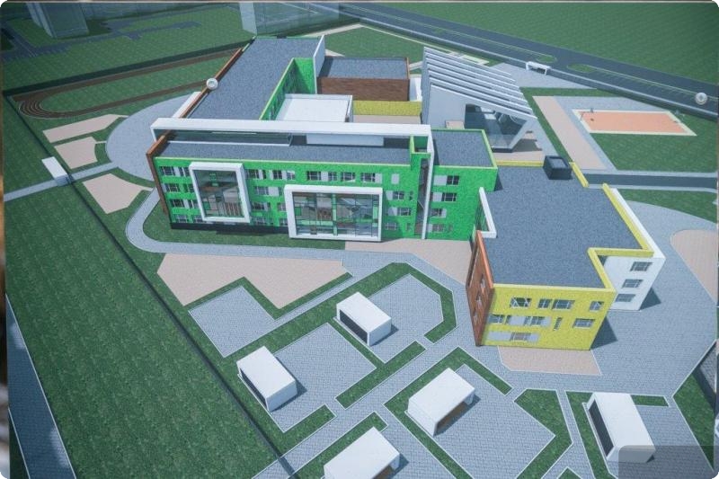 Образовательный комплекс будет включать школу на 825 мест, детский сад на 200 мест и бассейн. Строительство, по планам, должно завершиться в 2021 году.
