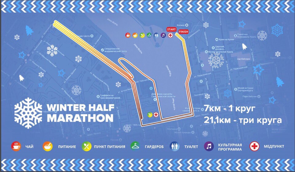 Сегодня, 2 декабря, в Екатеринбурге пройдёт Зимний полумарафон «Европа – Азия», из-за чего в центре города закроют для движения несколько улиц.