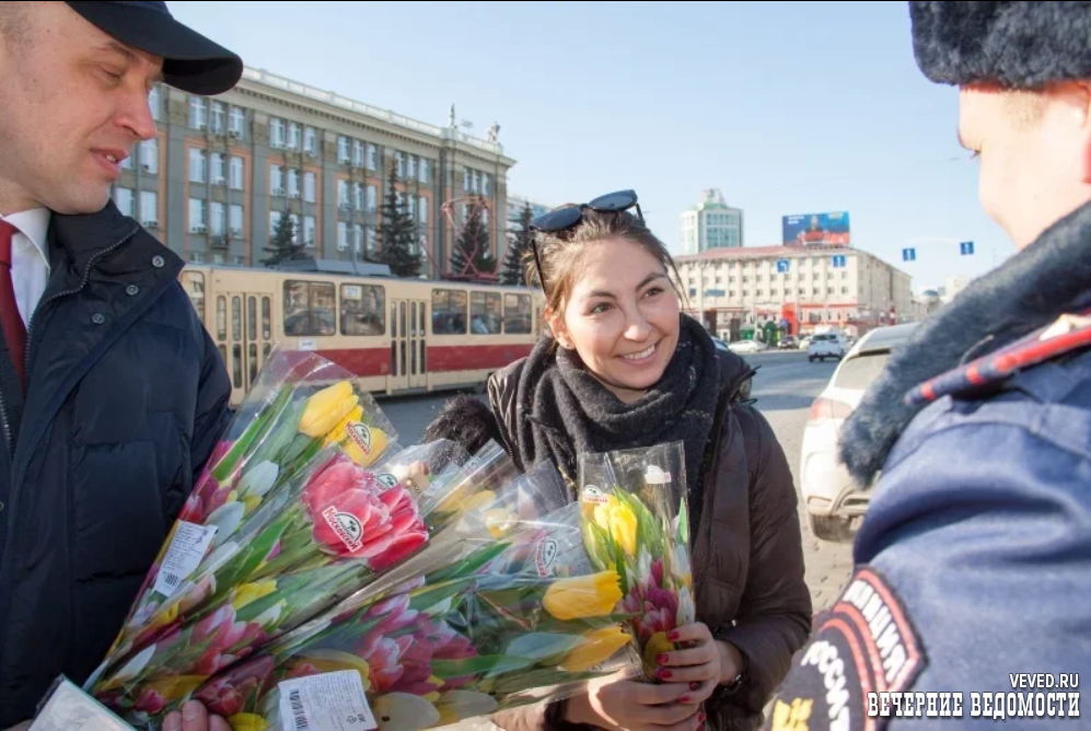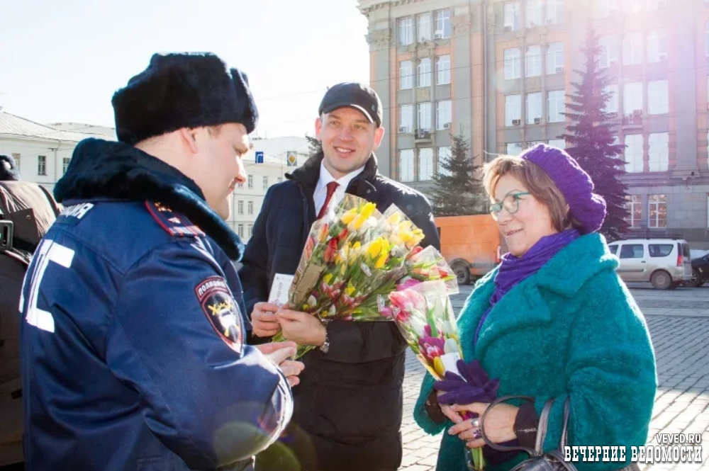 Сегодня, 6 марта, в центре Екатеринбурга сотрудники регионального ГИБДД провели акцию «Цветы для автоледи», приуроченную к празднику 8 Марта. Мероприятие началось в 11:00 напротив здания городской администрации.