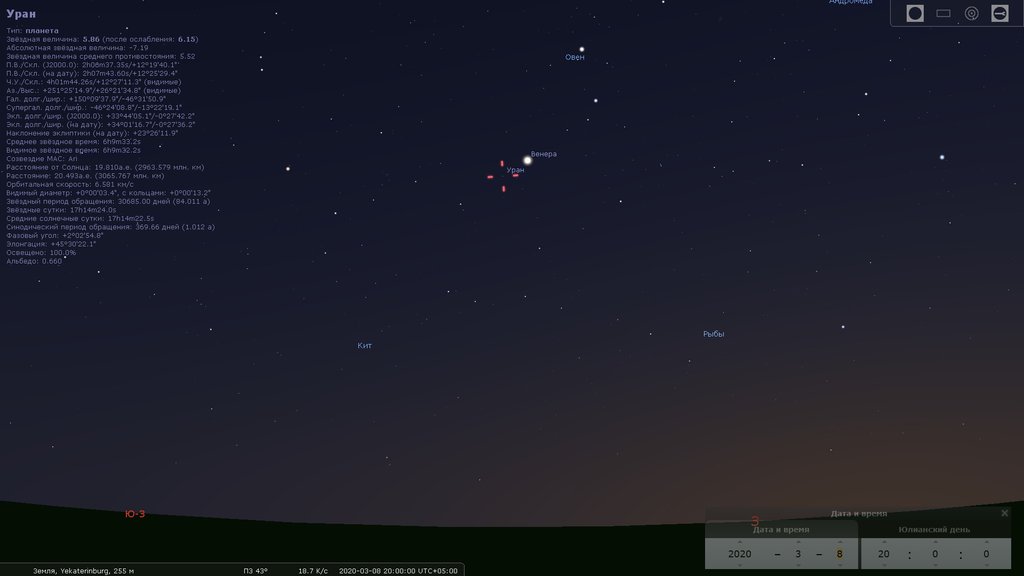 Сегодня, Международный женский день и Международный день планетариев, после 20:00 жители Свердловской области смогут в бинокль разглядеть Венеру и Уран.