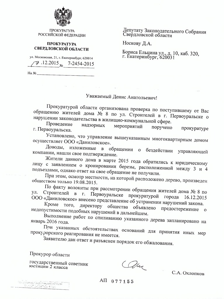 Прокуратура Свердловской области выявила нарушения в жилищно-коммунальной сфере Первоуральска. В адрес депутата Заксобрания Дениса Носкова обратились жители трех домов: № 20 по улице Емлина, № 8 на улице Строителей и № 26 на улице Космонавтов. После прокурорской проверки управляющим компаниям – ООО «Дом плюс» и ООО «Даниловское» – вынесено представление об устранении нарушений.