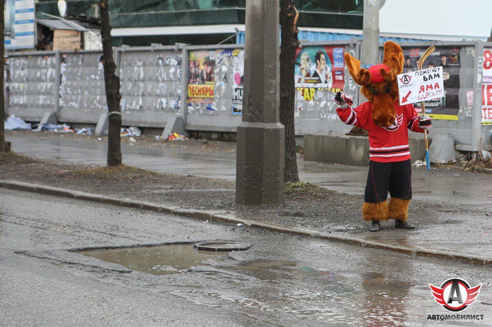 Хоккейный клуб «Автомобилист» начинает бороться с плохими дорогами и грязью в Екатеринбурге. Маскот команды Автик вышел на улицы города, чтобы указать местной администрации, где стоит заняться ремонтом проезжей части.