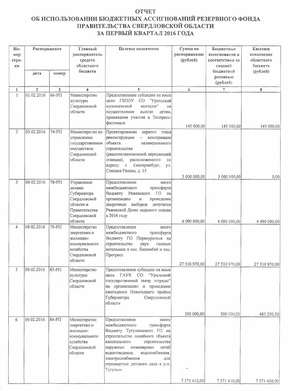 В первом квартале 2016 года из запланированных 83,9 млн рублей Резервного фонда Свердловской области было израсходовано только 51,3 млн рублей. Об этом сообщает депутат Заксобрания Андрей Альшевских, который опубликовал данную информацию в своем блоге в «Живом журнале».