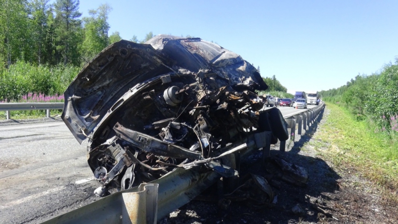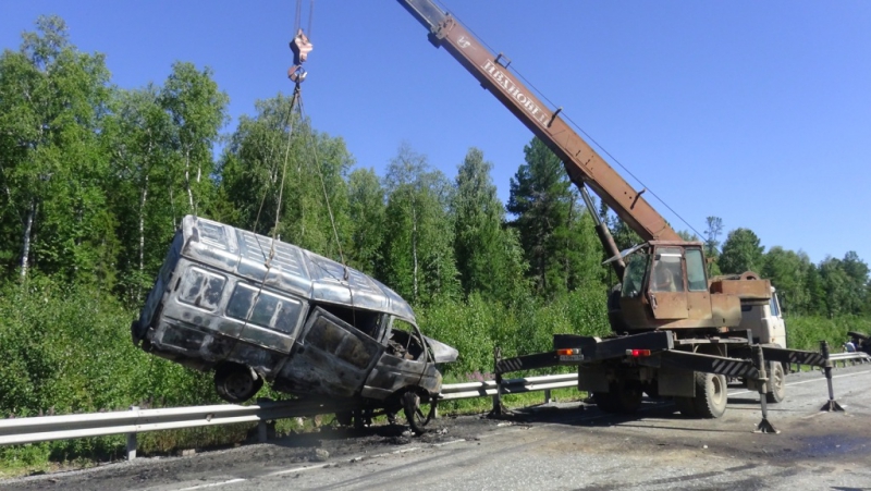 В результате столкновения грузовик вынесло на ограждение дороги, после чего он перевернулся. «Газель» развернуло в обратном направлении и отбросило на противоположное ограждение, после чего автомобиль загорелся.