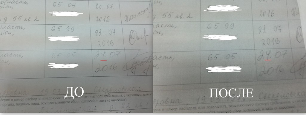 Также удалось обнаружить и другие «корректировки»: там, где избиратель ставил дату 21 июля, теперь стоит 24-е, а где было 2 августа, стало 8-е число. И таких «редакционных правок» можно перечислить еще с десяток, говорят в штабе Анатолия Павлова. Там отмечают, что депутат возмущен сложившейся ситуацией и намерен добиваться возбуждения уголовного дела по факту подобной «ретуши».