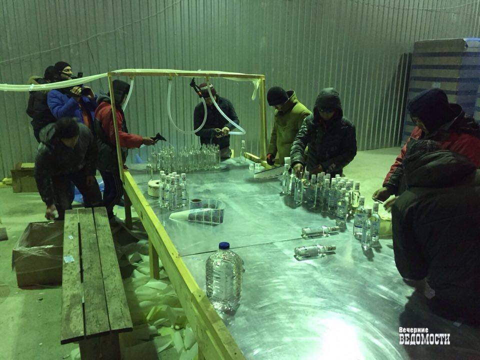 Сотрудники свердловской полиции сегодня, 20 декабря, выявили в Екатеринбурге цех по розливу фальсифицированной водки. В настоящее время оперативники областного и городского УБЭП проводят осмотр помещений, опрашивают работников подпольного мини-завода – гастарбайтеров из Средней Азии.