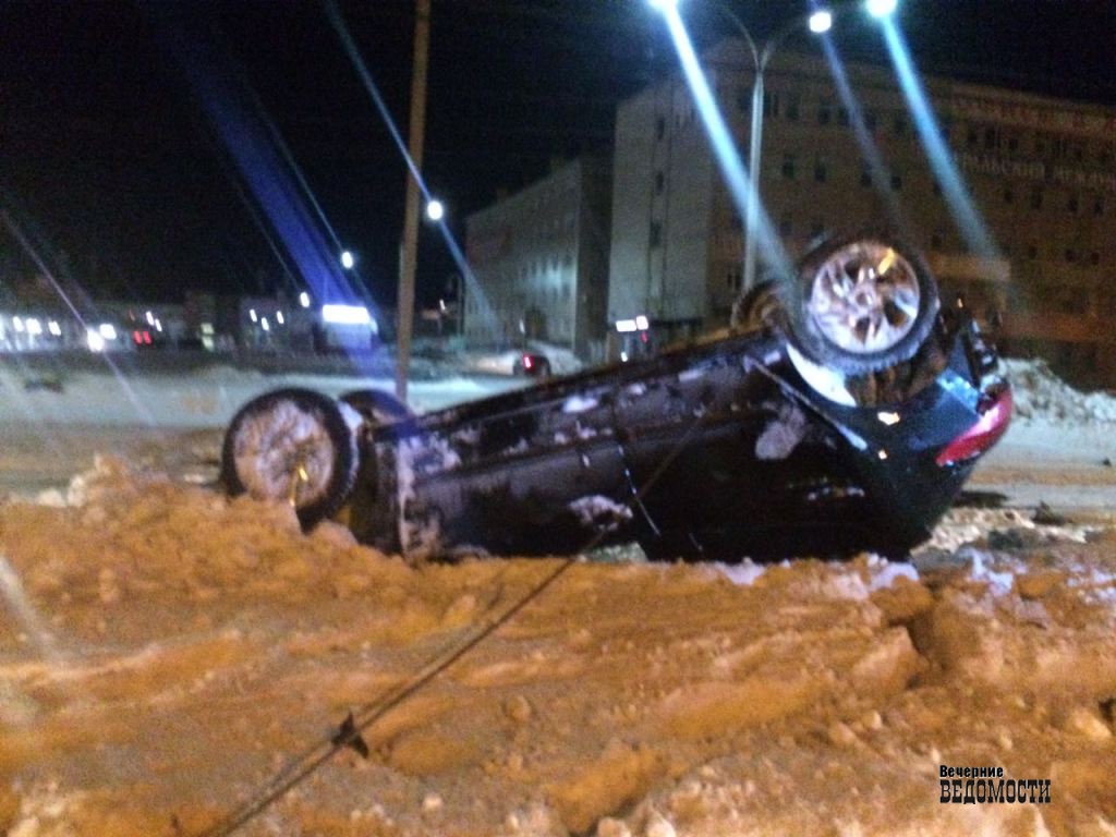 Пьяный водитель перевернулся на трамвайных путях в Екатеринбурге (ФОТО)