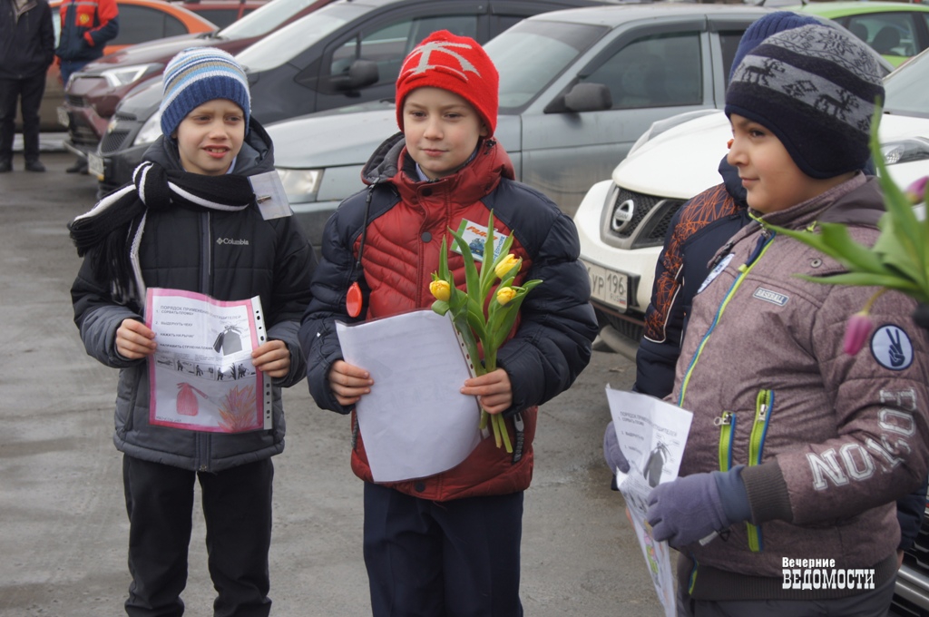 Всего в Екатеринбурге сегодня выставлено три «весенних патруля» – на площади Кирова, площади Первой Пятилетки на Уралмаше и на перекрестке Степана Разина – Щорса. Также автомобилисток сегодня поздравляют в одной из автошкол города и в регистрационном подразделении на улице 3-го Интернационала. Завтра на улицах города поздравлять дам будет лично начальник ГИБДД Екатеринбурга Вадим Буйдалин.