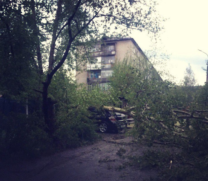 Спустя трое суток после урагана, обрушившегося на Свердловскую область, на улице Зеленой в городе Серове до сих пор не могут ликвидировать последствия природной стихии. Во дворе дома № 7а порывом ветра повалило старый тополь, который рухнул на крышу автомобиля «Опель-Астра».