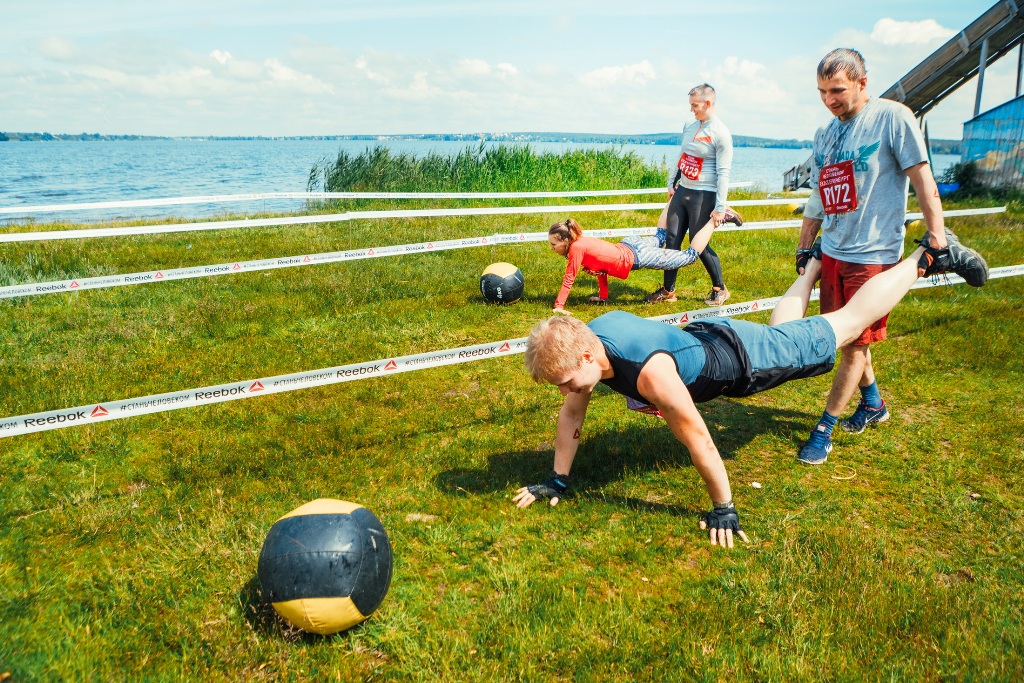 Участники подтягивались, перетаскивали мешки с песком, выполняли командные синхронные подъемы корпуса, приседали с утяжелением, кантовали покрышки и многое другое. Три команды – лидеры по времени - получили право бесплатно принять участие в осеннем соревновании «Стань человеком», которое состоится в Москве. Дистанцию они пробежали менее чем за 50 минут.