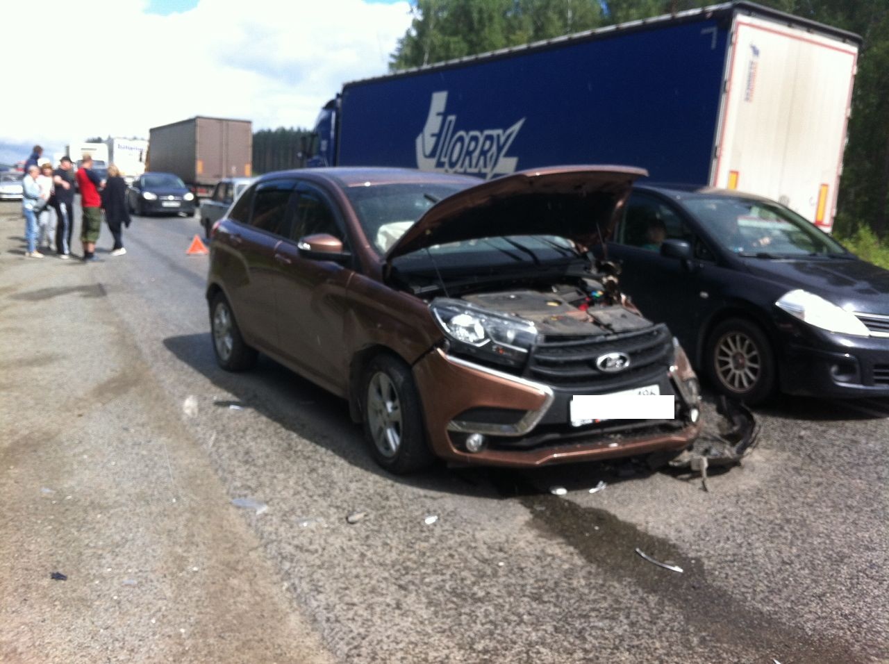 ДТП произошло утром. По информации ГИБДД, «Шевроле-Круз» выехал на полосу встречного движения и столкнулся с цементовозом «Вольво», который от удара занесло, в результате чего пострадали еще две машины — «Лада ХRAY» и «Рено-Дастер».