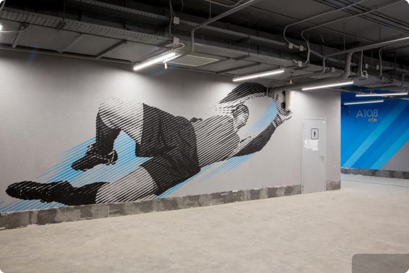 В работах по проекту навигационной системы задействовано порядка 40 специалистов: логистов, дизайнеров, художников. В основе художественного оформления заложена идея настроения Олимпиад 60–70-х годов. Объединяющим элементом системы навигации и арт-объектов стали прямые линии, характерные для дизайна того времени.