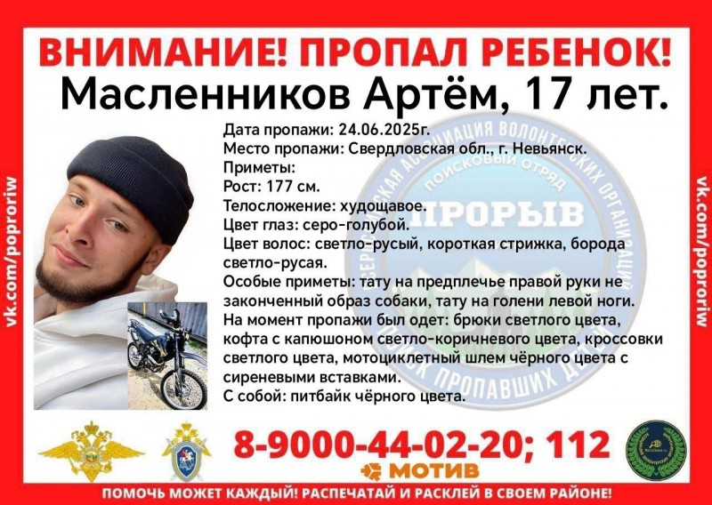 Поисковый отряд «Прорыв» сообщает о пропаже в Невьянске двух несовершеннолетних: 15-летней Полины Ширкуновой и 17-летнего Артёма Масленникова. Со вторника, 24 июня, их местонахождение остаётся неизвестным.