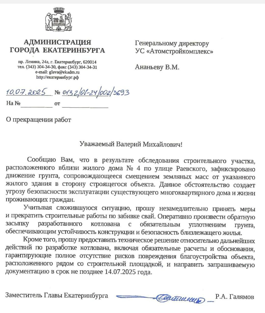 Документ подписан вице-мэром Рустамом Галямовым