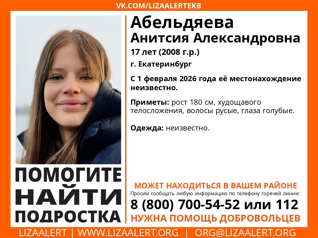 В Екатеринбурге ищут 16-летнюю Викторию Бякову и 17-летнюю Анитсию Абельдяеву. Со вчерашнего дня их местонахождение неизвестно. Ориентировку на девушек публикует поисковый отряд «ЛизаАлерт».