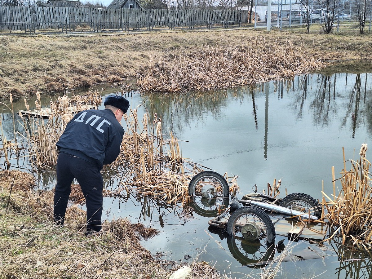 Сотрудники Алапаевской ГИБДД разбираются в обстоятельствах ДТП в посёлке Санкино, где в пожарном водоёме местные жители обнаружили тело мужчины и мотоцикл.