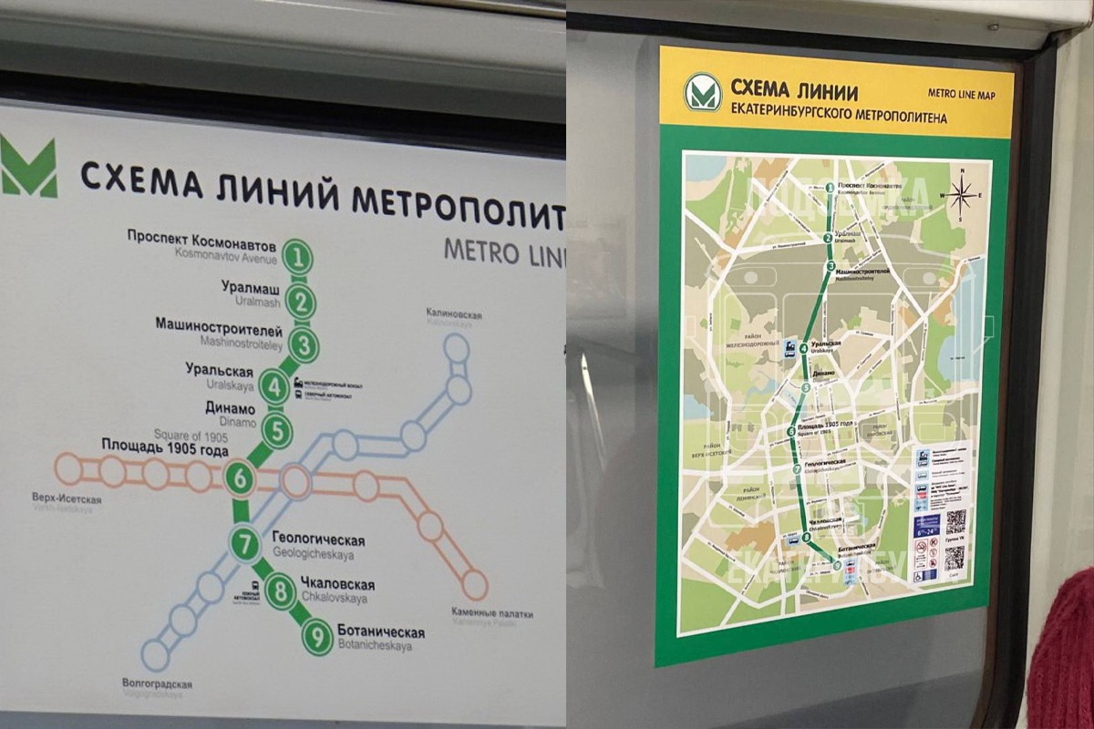 В метрополитене Екатеринбурга больше не будет «перспективных линий». В вагонах начали менять схемы со старых на новые, на которых изображена только действующая линия метрополитена.
