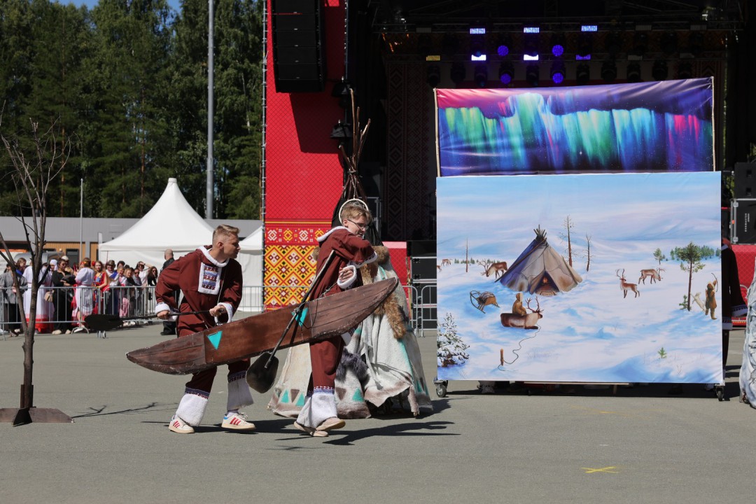 В первой номинации зрители увидели алтайский ритуал поклонения властелину барсов, хантыйские медвежьи празднества, калмыцкий эпос «Джангариада» о героических богатырях, а также удмуртский «Гербер» — торжество завершения посевной поры.
