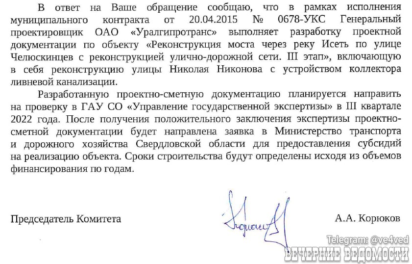 Ответ на запрос Вечерних ведомостей от 2021 года