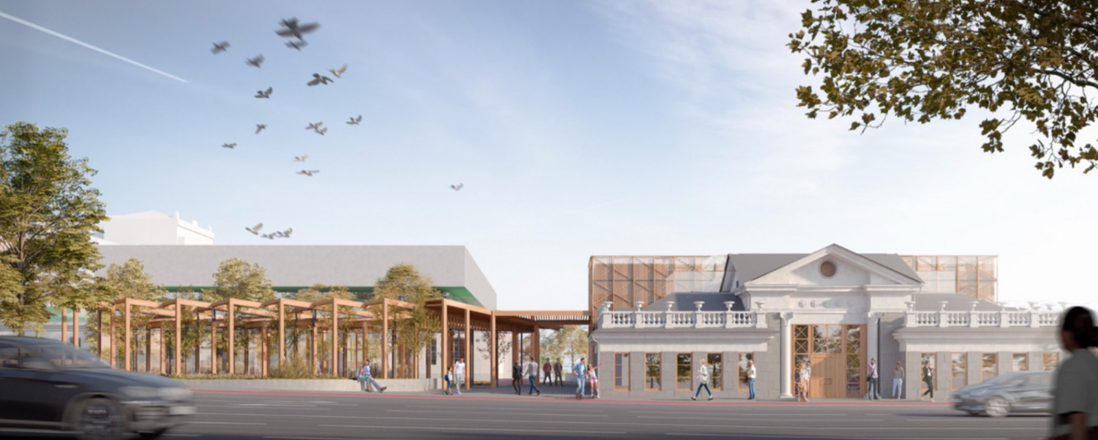 Рендер будущего ресторана «Цветы» и сквера возле него