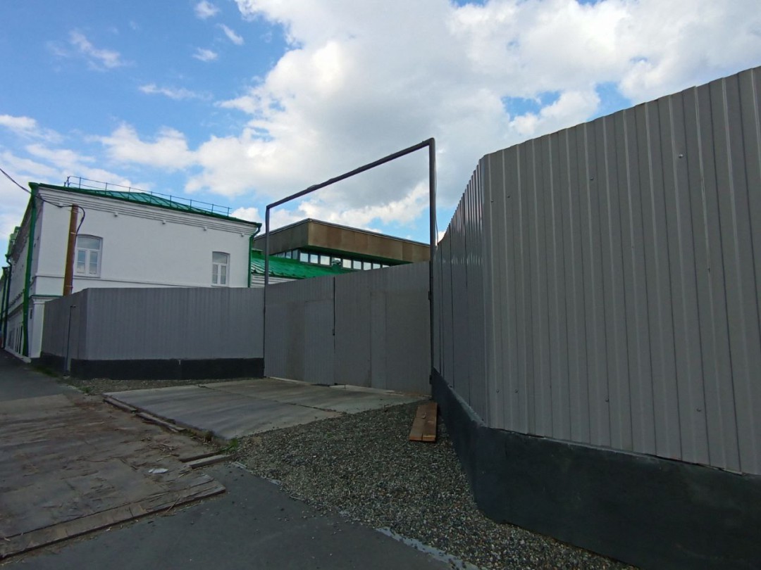 Градозащитники возмущаются тем, что на установленном капитальном заборе не размещают информационные щиты, и напоминают, что работы производятся в охранной зоне объекта культурного наследия «Госпиталь Екатеринбургского завода».
