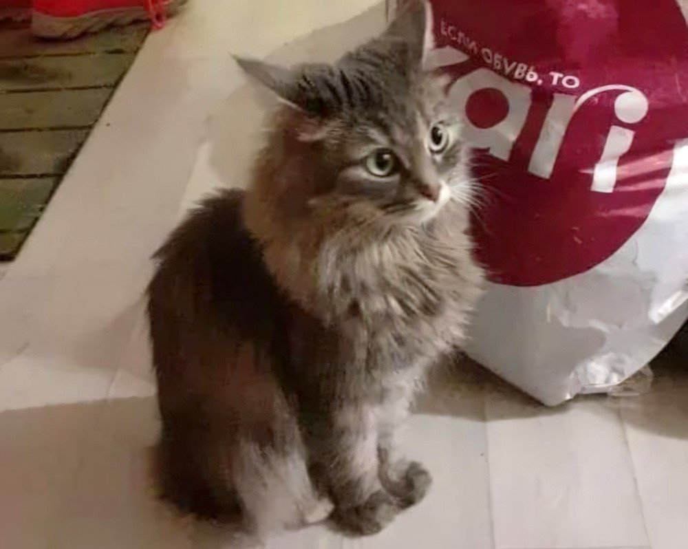 Дом ищут и двое котят, родившихся в начале сентября. Это разнополая пара: девочка тёмно-коричневого окраса с рыжими пятнами и серый с белым мальчик. Котята родились в пустом доме после смерти хозяйки и провели 2-3 недели в подполе. Их удалось спасти, избавить от паразитов и вылечить глазки. Котята активные, приучены к лотку.
