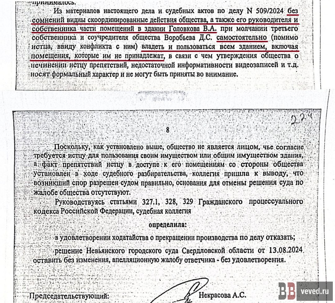 Помимо этого, в рамках отдельного спора компании, связанные с Головковым, пытались через суд оформить за собой право собственности на объект электросетевой инфраструктуры — промышленную подстанцию, обеспечивающую энергоснабжение площадки. Однако суд отказал в удовлетворении и этих требований, не признав законных оснований для перехода права собственности. Эту подстанцию в своё время строил Кузьминых для того, чтобы обеспечить потребности производства в здании.