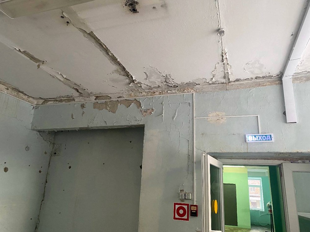 В ходе контрольных мероприятий были выявлены серьёзные нарушения в содержании здания детской больницы. Установлено, что на протяжении длительного времени кровля перехода находилась в ненадлежащем состоянии. Из-за протечек влага беспрепятственно проникала внутрь помещений, нанося значительный ущерб отделке. Постоянная сырость привела к разрушению внутренней отделки стен и потолка в переходе. Кроме того, проверяющие зафиксировали поражение поверхностей грибком, что создавало угрозу для здоровья маленьких пациентов и персонала.