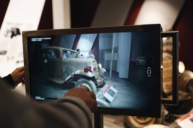 Экспозиция представляет собой слияние истории и технологии, реализованных с помощью AR-прицелов, окружающих автомобиль. С их помощью демонстрируются изменения, которые претерпел автомобиль в эпоху СССР.