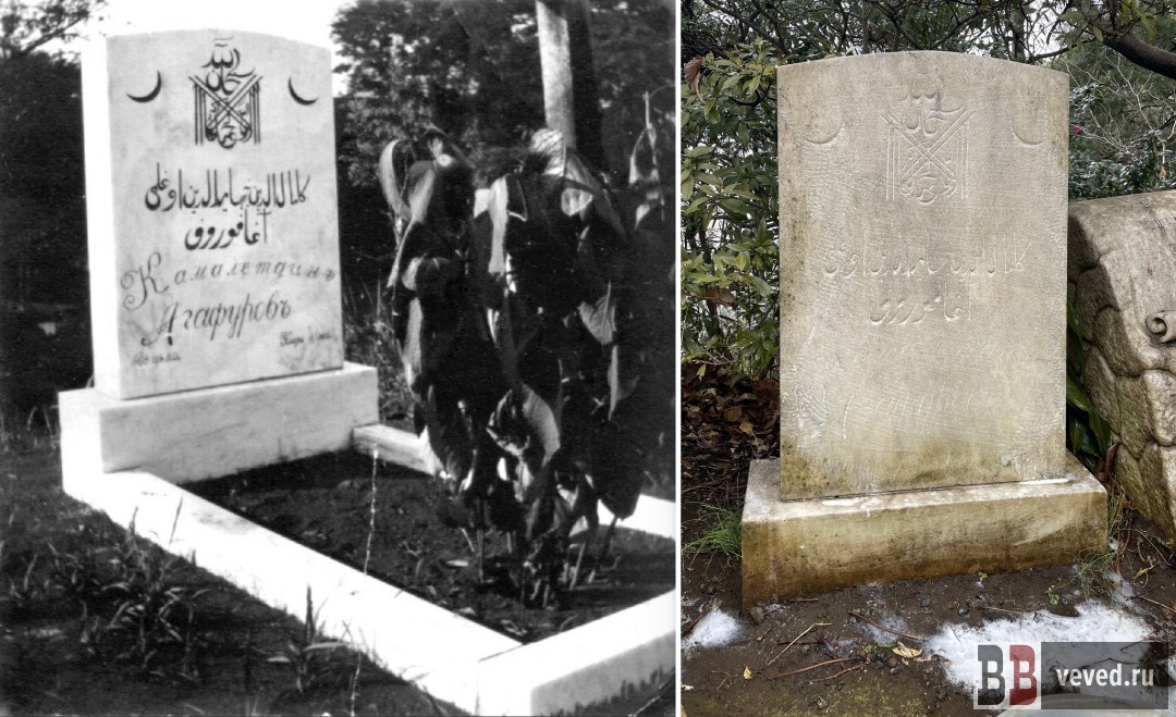 Надгробный памятник Камалетдина Агафурова в 1922 году и в 2025. Фото: ДУМ Свердловской области / Анна Гринь
