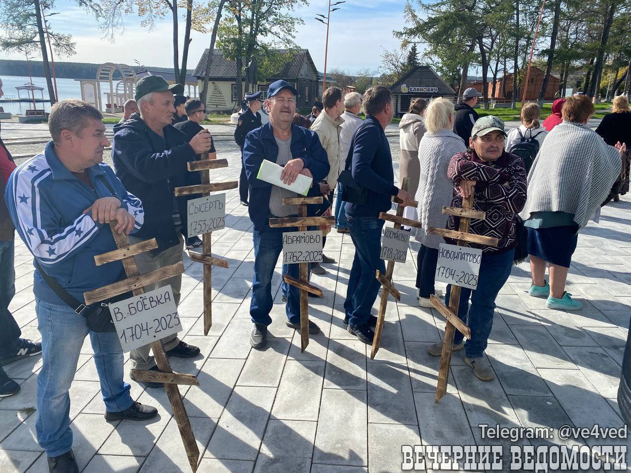 Акция с могильными крестами с названиями населённых пунктов, находящихся в Сысертском районе, 20 сентября 2023