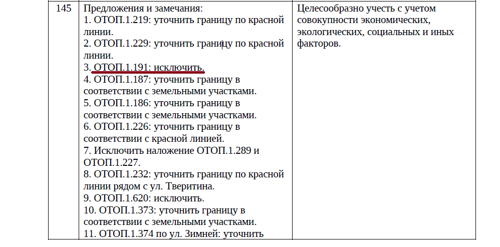 И мэрия согласилась учесть это предложение. «Предложения целесообразно учесть при условии доработки в целях обеспечения сбалансированного учета экономических, экологических, социальных и иных факторов», — написано в заключении.