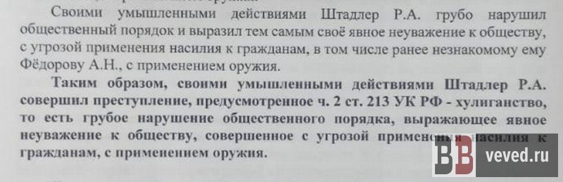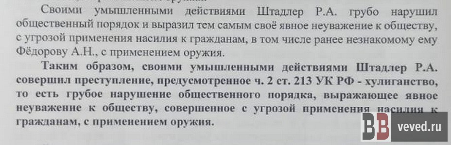 Дело против 30-летнего Романа Штадлера с обвинительным заключением по статье о хулиганстве с применением оружия (часть 2 статьи 213 УК) было передано судье Ленинского райсуда Татьяне Чащиной. Накануне прошло первое заседание по делу.