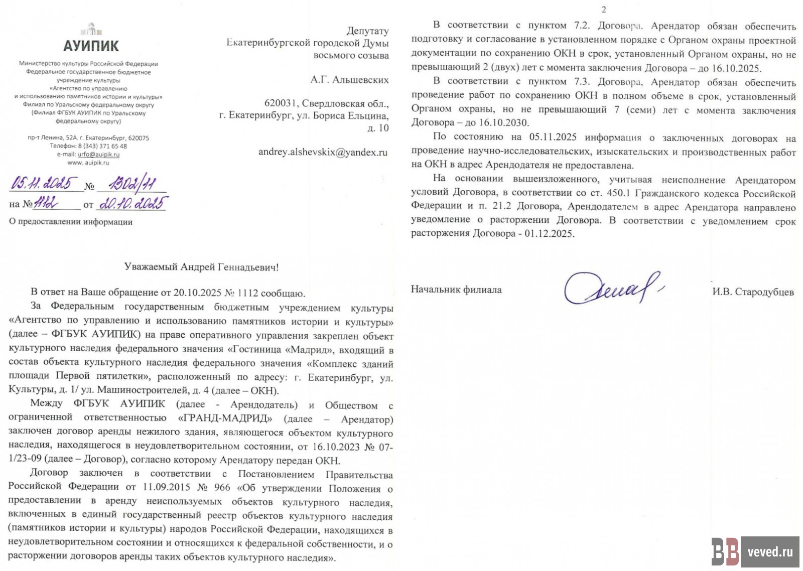 Ответ АУИПИК депутату Андрею Альшевских