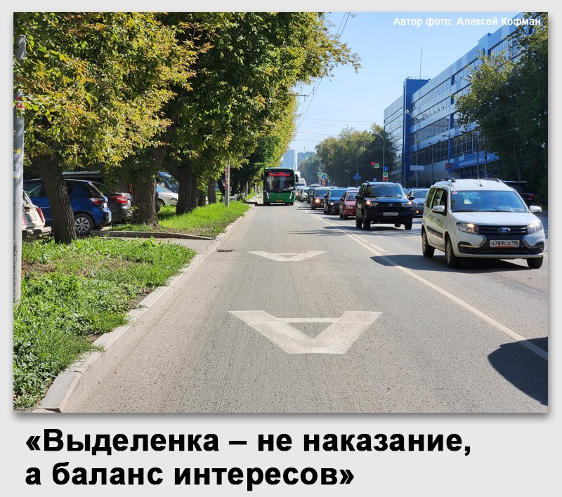 А.К.: Я не очень знаком с ситуацией на Уралмаше, каждый случай надо рассматривать отдельно. Есть методические рекомендации Минтранса России, в которых сказано, что выделенные полосы следует делать, если общая интенсивность общественного транспорта на участке превышает 10 единиц в час, а задержка по времени превышает 25% относительно условий свободного потока. Общественного транспорта там точно больше, и если задержка в час пик там была, то выделенная полоса обоснована.