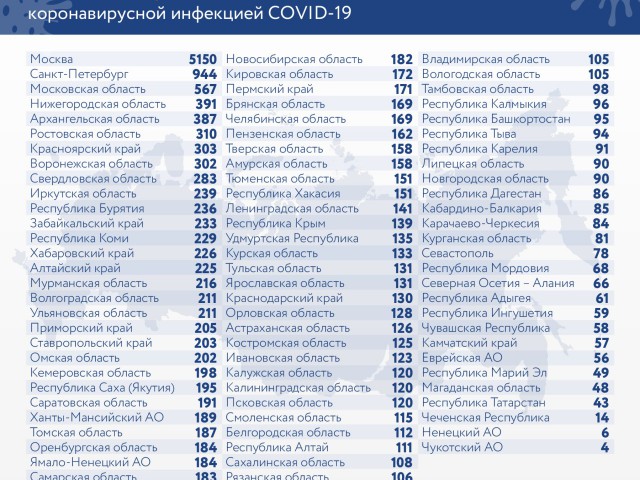 Также за сутки зафиксировано 355 летальных случаев. С начала эпидемии в России от коронавируса скончалось 28 828 человек. Мероприятие для возрастной категории 18+