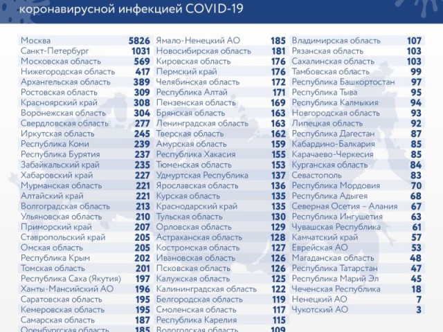 Также за сутки зафиксировано 389 летальных случаев. С начала эпидемии в России от коронавируса скончалось 29 217 человек. Мероприятие для возрастной категории 18+