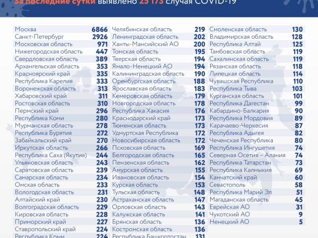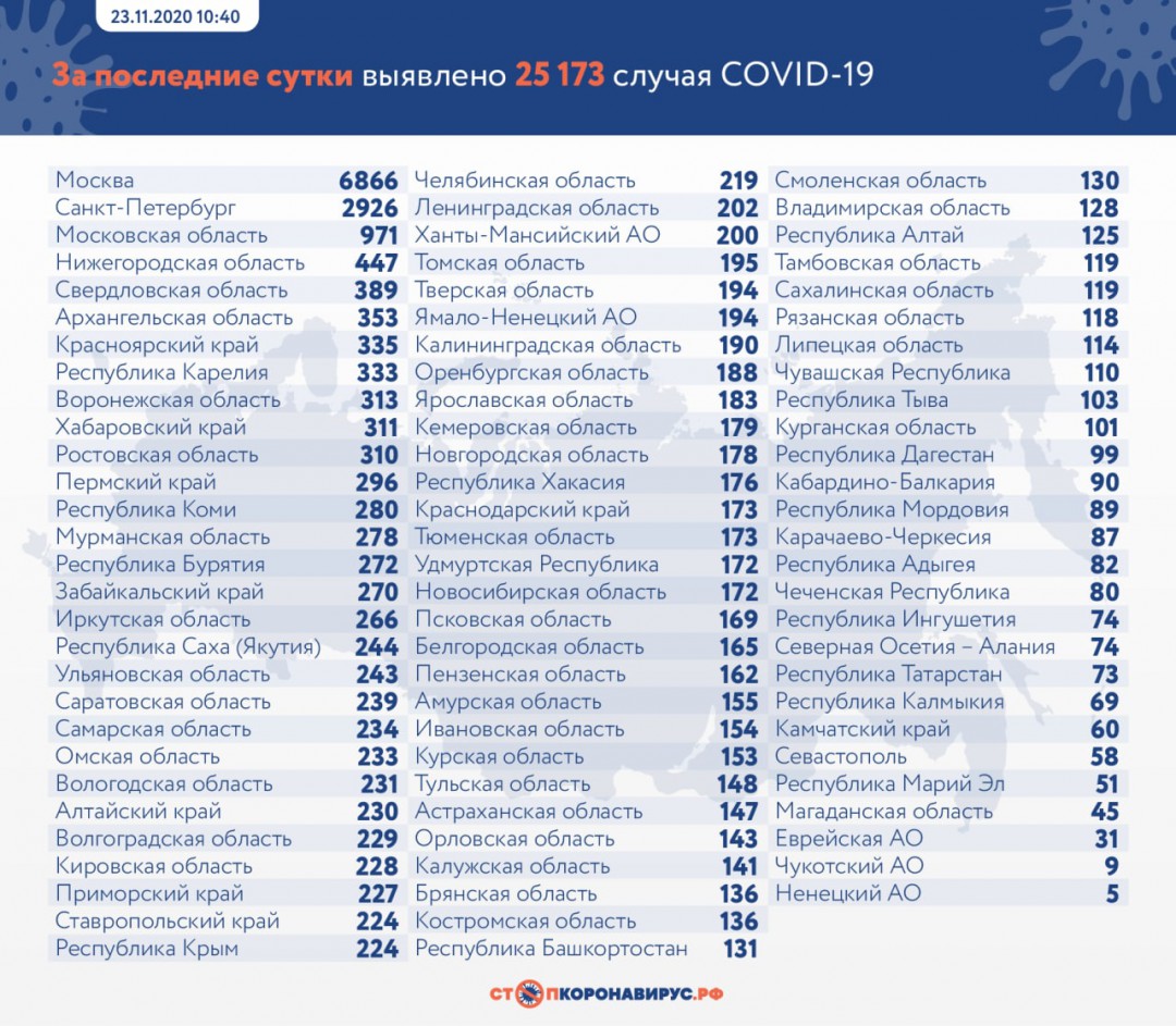 В России за сутки выявили 25 173 случая коронавируса