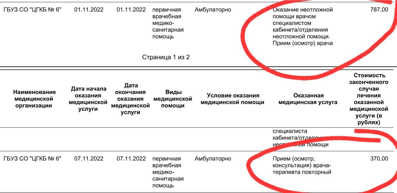 Оказалось, что в ноябре я не просто «была на приеме» в своей поликлинике при ГБУЗ СО ЦГКБ №6, а «была на приеме в отделении неотложной помощи», где врач эту неотложную помощь мне «оказал». Через неделю врач снова «осмотрел» меня на повторной консультации.