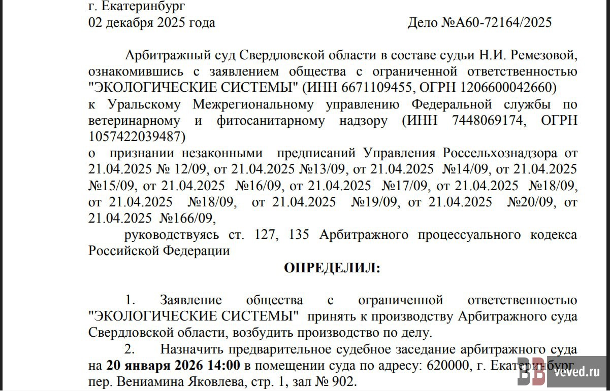 Понедельник, 8 декабря, 14.05 Несостоявшийся концессионер мусорного полигона под Сысертью продолжил судиться с Россельхознадзором за спорный участок